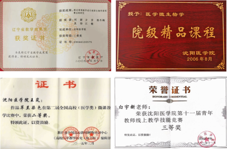 教研室教学团队共主持教研项目17项,发表教学研究论文20篇。曾获得辽宁省教学成果奖、院级精品课程、“第二届全国高校(医学类)微课程”二等奖、“第十一届、第十二届伟德官网bv1946青年教师教学技能竞赛” 三等奖等奖项。主编或参编教材总计24部,有代表性的包括《病原生物学》、《医学微生物学》、《微生物学与免疫学》等。