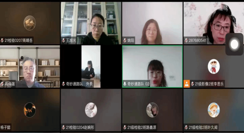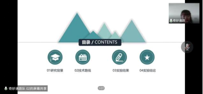 比赛过程中每组进行五分钟课题汇报,然后进入现场答辩环节。各参赛选手克服线上参赛的种种困难,为大家带来了一场精彩的答辩。