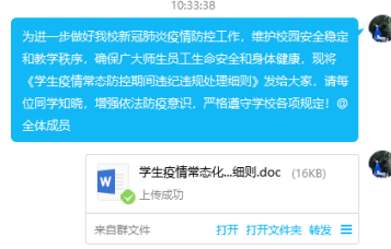 会上,张忠经理强调,要把疫情防控工作作为当前最重要最紧迫的政治任务,全力以赴做好疫情防控工作;要压紧压实责任,将疫情防控责任落实到每名师生;要突出防控重点,严防死守,不放过一个细节。陈文虎书记指出,要充分认识到当前疫情防控工作的严峻复杂形势,高度警惕麻痹思想、厌战情绪、侥幸心理、松劲心态,严格按照通知要求,及时牢牢抓住、切实抓好,从严从速从紧继续扎实做好疫情防控各项工作。